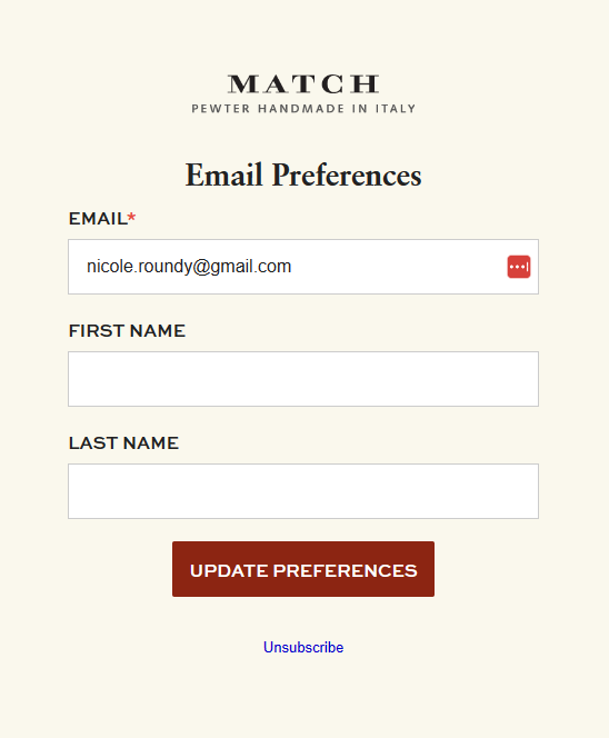 5. Email Preference. Asking for additional information at signup can create a barrier. For Match the confirmation email was linked to the preference center, collecting the users First & Last Name in the third step.