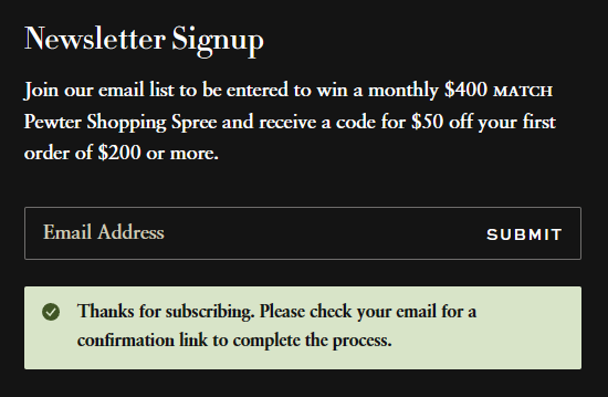 4. Sign-up Forms. Tasked with increasing newsletter signups. Updated the footer form and included an incentive signup offer.